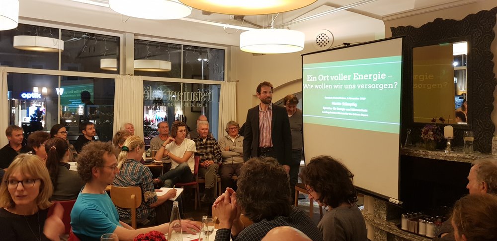 Auf Einladung des Ortsverbands der Grünen Garmisch-Partenkirchen sind mehr als 80 Menschen am Dienstagabend, den 5. November, im Adlwärth Pavillon zusammengekommen, um auf engstem Raum gemeinsam mit lokalen und regionalen Experten über nachhaltige Energieversorgung zu diskutieren.